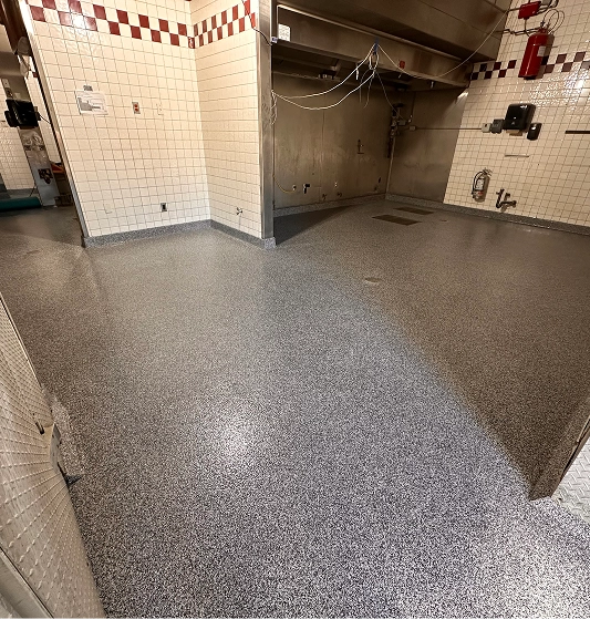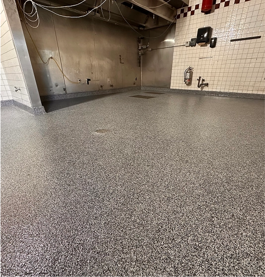 Bartaco’s Hingham, MA location required a flooring solution that could handle the intense demands of a busy kitchen while maintaining strict hygiene standards. A Urethane Cement system was installed to deliver exceptional durability, moisture resistance, and easy cleaning. Ideal for food service environments, the seamless surface withstands spills, thermal shock, and constant foot traffic, providing a safe, long-lasting floor that supports daily operations behind the scenes in this high-volume restaurant setting.